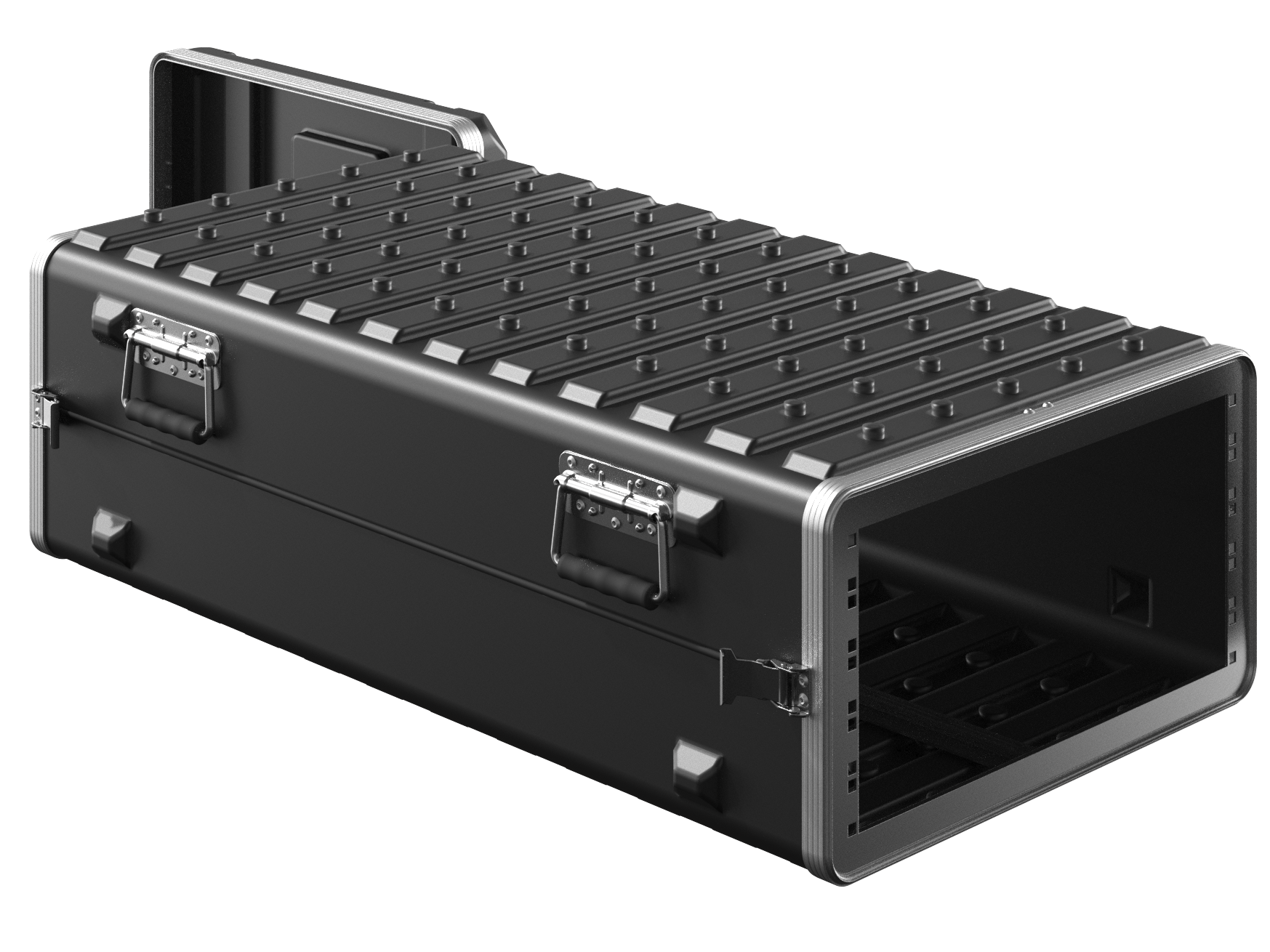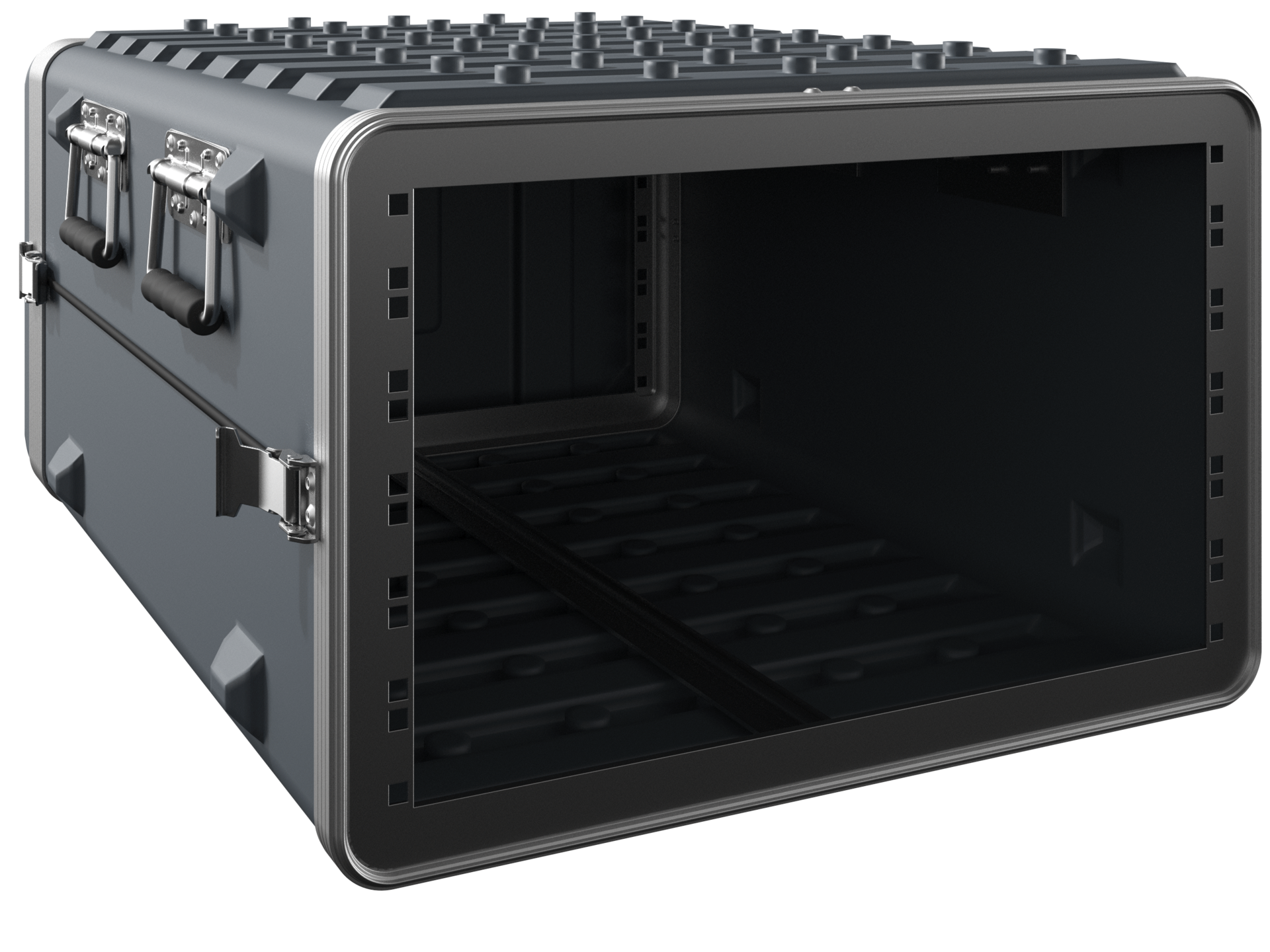 Dank der beim Tiefziehprozess eingebrachten Leisten am Boden und im Deckel sind die 19 Zoll Container „Rigid-Mount“ selbst bei unterschiedlichen Abmessungen jederzeit miteinander stapelbar. Das verschafft Ihnen speziell beim Transport einer Vielzahl an Geräten einen großen logistischen Vorteil.