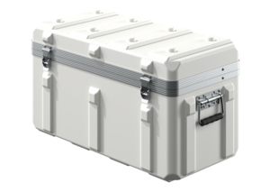 In neun Standardfarben verfügbar werden die leichten Kunststoffschalen aus hochschlagzähem Polyethylen (PE-HD) gefertigt. Sie sind zudem widerstandsfähig gegen chemische Einflüsse. So bleiben Farbe und Form auch unter extremen Belastungen erhalten und erfüllen selbst härteste branchenspezifische Normen. Transportboxen sind besonders vielseitig, was die Einsatzmöglichkeiten betrifft. Sie sind über das Standardsortiment hinaus nahezu beliebig dimensionierbar und eignen sich dadurch für eine riesige Anzahl potenzieller Transport- und Lagergüter. Je nach Ausführung erfüllt die Transportbox auch besondere zivile und militärische Verpackungsnormen wie z.B. die ATA 300 (Category I).,