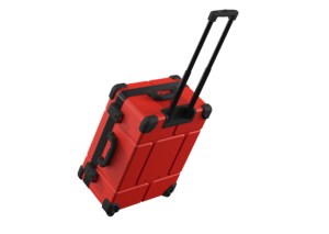 Ausgestattet als Industrietrolley mit robusten Rollen und Ziehgriff lässt er sich perfekt einsetzen als Werkzeugkoffer, Gerätekoffer, Spezialkoffer oder Transportkoffer.