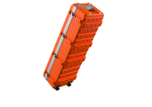 Der Trolley 120 40‑265 verfügt über ein Innenvolumen von 1 150 mm Länge, 350 mm Breite und 265 mm Höhe. Damit ist er ideal geeignet für längliche oder sperrige Ausrüstungsgegenstände wie Kalibrierstangen, Spezialkabel, Verlängerungen, Stativteile oder lange Prüfsonden. Die Gehäuse bestehen aus robustem, schlagzähem Polyethylen, das nicht nur mechanische Einwirkungen zuverlässig abfedert, sondern auch gegen chemische Belastungen resistent ist. So bleiben die Stabilität auch unter rauen Einsatzbedingungen dauerhaft erhalten. Optional lässt sich der Korpus des Behälters außen zusätzlich verstärken – ideal für extra Schutz bei schweren oder stoßanfälligen Inhalten. Im Inneren sind passgenaue Schaumstoffeinlagen möglich, die empfindliche Instrumente fest umschließen und gegen Verrutschen sichern. Als Systembehälter ist der Trolley stapelbar: Stapelnoppen im Deckel ermöglichen ein sicheres Aufeinandersetzen mit anderen Systembehältern. Wer auf Rollen verzichten möchte, erhält das Modell auch in einer Kofferversion – ganz nach individuellen Transportwünschen.