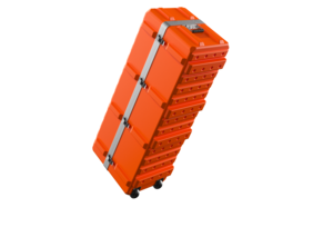 Der Thermodyne Trolley 120 40-435 besteht aus leichtem, äußerst schlagzähem Polyethylen (PE-HD) und ist in neun Standardfarben erhältlich – widerstandsfähig gegen Chemikalien und selbst unter extremen Bedingungen form- und farbstabil. Der Behälter ist als Systemlösung stapelbar, dank Rasterung im Deckel. Innen bietet er 1150 × 350 × 435 mm, außen misst er 1215 × 400 × 495 mm. Zur Grundausstattung gehören vier verzinkte Stahlverschlüsse, zwei große Stahlgriffe, fünf Edelstahlscharniere (50 × 50 mm), zwei Kantenrollen (75 mm, 100 kg/Paar) und ein kleines Aluminiumprofil. Zu den Optionen zählen zahlreiche Varianten wie zusätzliche Behälterversteifungen, ein abnehmbarer Deckel und individuelle Beschriftungen verschiedener Art. Die Innenausstattung lässt sich flexibel wählen – von passgenauem Schaumstoff über mechanische bis hin zu elektrischen Einbauten.