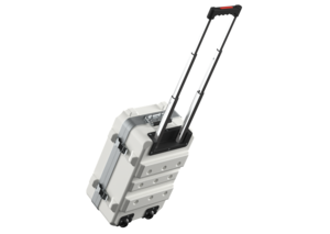 Der Transport-Trolley 48 32-165 ist in neun Standardfarben verfügbar und kann auf Wunsch auch als Koffervariante gefertigt werden. Die Innenmaße betragen 428 mm x 270 mm x 165 mm (L X B X H), wobei das Leergewicht 4,1 Kg beträgt. Durch die Behälterschale aus hochschlagzähem Polyethylen erfüllt der Trolley härteste branchenspezifische Normen. Dadurch sorgt er für maximalen Schutz der transportierten Ware. Zusätzlicher Schutz kann durch Behälterversteifungen und maßgeschneiderte Schaumstoffzuschnitte gewährleistet werden. Als Systembehälter ist eine Stapelbarkeit mit anderen Systembehältern zu jeder Zeit gegeben.