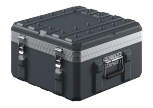 Der Thermodyne Transportkoffer in der Ausführung 48 48 03 S wird als Trolleyvariante gefertigt und kann mit den Rollensystemen 400 150 und 400 165 ausgestattet werden. Mit Innenmaßen von 430 mm x 430 mm x 240 mm (L x B x H) bietet der Trolley ausreichend Platz für verschiedenste Elektronikkomponenten, Werkzeuge und sensible Messgeräte. Die Behälterschalen aus hochschlagzähem Polyethylen gewährleisten optimalen Schutz und ermöglichen eine Stapelung mit anderen Behältern unterschiedlicher Größe. Eine Fertigung gemäß spezifischer Verpackungsnormen ist auf Anfrage möglich.