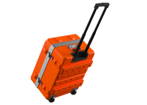 In neun Standardfarben erhältlich, wird der Trolley 56 48-270 mit den Innenabmessungen von 510 mm in der Länge, 428 mm in der Breite und 270 mm in der Höhe gefertigt. Das Behältermaterial aus hochschlagzähem PE-HD sorgt für eine äußerst hohe Widerstandsfähigkeit gegenüber chemischen und physischen Einflüssen. Daher eignet sich der Trolley ideal für den Transport und die Lagerung von sensiblen Komponenten auch im Outdooreinsatz. Auf Wunsch kann der Behälter auch als Kofferausführung ohne Rollen und mittig platziertem Griff hergestellt werden. Der Innenbereich kann zudem mit zusätzlichen Schaumstoffeinsetzen und mechanischen sowie elektrischen Anbauten ausgestattet werden.