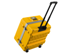 Der Thermodyne Trolley 56 56-335 eignet sich hervorragend als vielseitig anpassbarer Transport-Trolley für den Einsatz im Outdoor-Bereich. Dank seiner leichtgängigen Rollen lässt er sich selbst auf unebenem Untergrund problemlos bewegen. Mit Innenmaßen von 510 x 510 x 270 mm (L x B x H) bietet er viel Stauraum für sensible Gerätschaften, wie empfindliche Kameras oder Diagnosetechnik. Das Gehäuse aus besonders stoßfestem Polyethylen sowie optional erhältliche Schaumstoffeinsätze gewährleisten optimalen Schutz für den Inhalt. Zusätzlich ist der Trolley als Systemkoffer konzipiert und kann mit anderen Behältern verschiedener Größen platzsparend gestapelt werden.