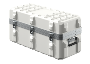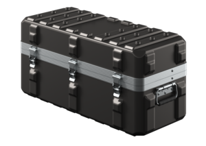 Durch die Fertigung der Behälterschalen aus hochschlagzähem Polyethylen eignet sich Transportbehälter 72 32 05 S insbesondere zum Transport und zur Lagerung von sehr sensiblen Komponenten, wie Mess- und Prüfgeräten, Elektronikkomponenten und weiterer hochsensibler Bauteile. Der Behälter weist Innenmaße von 670 mm, 270 mm, und 305 mm (L X B X H) auf und hat ein Leergewicht von 4,6 Kilogramm. Er kann sowohl als Kofferausführung mit einem mittig an der Vorderseite verbauten Griff, als auch als Trolleyausführung mit Ziehgriff und Rollensystem hergestellt werden. Als Systembehälter verfügt er über die Möglichkeit, mit Transportbehältern unterschiedlicher Größen gestapelt zu werden.