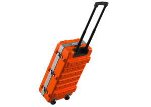 Trolley 82 40-165 ist in neun Standardfarben erhältlich und kann auf Wunsch CI konform mit Beschriftungen verschiedener Art (Gravuren, Heißprägungen, Aufkleber) versehen werden. Der Trolley misst innen 670 mm x 350 mm x 165 mm (L X B X H) und weist ein Gewicht von 6,4 Kilogramm auf. Dank der Behälterschale aus hochschlagfesten PE-HD gelten diese Trolleys als nahezu unzerstörbar in Temperaturbereichen von -40°C bis +71°C und halten extremen physikalischen und chemischen Kräften stand. Das macht den Trolley zu einem idealen Behälter für den Outdoor-Einsatz. Als Systembehälter ist der Trolley jederzeit stapelbar mit anderen Systembehältern auch in unterschiedlichen Größen.