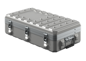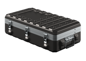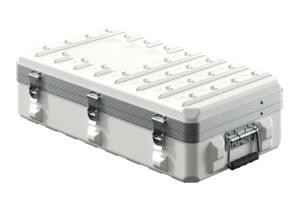 Transportbehälter-Variante 72 40 03 S kann sowohl als Kofferversion mit einem mittig an der Vorderseite montierten Griff, als auch als Trolleyvariante mit Ausziehgriff und Rollensystemen 400 150 oder 400 165 gefertigt werden. Als Systembehälter ist er in allen Versionen weiterhin stapelbar mit anderen Systembehältern. Die Innenmaße betragen 670 mm in der Länge, 350 mm in der Breite und 175 mm in der Höhe. Das Leergewicht des Behälters beträgt 4,7 Kilogramm. Durch die Herstellung der Behälterschalen aus hochschlagzähem Polyethylen eignet sich der Thermodyne Behälter insbesondere für den Transport und die Lagerung extrem sensibler Güter, wie Elektronikkomponenten, Messgeräte und Sensoren.