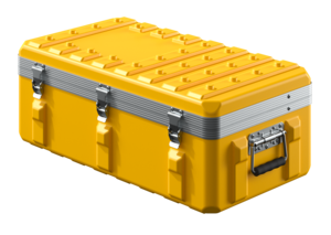 Die Transportbehälter-Variante 72 40 04 S ist vielseitig einsetzbar: Sie kann entweder als Kofferversion mit einem zentral an der Vorderseite angebrachten Griff oder als Trolleyvariante mit einem ausziehbaren Griff und den Rollensystemen 400 150 oder 400 165 gefertigt werden. In allen Ausführungen bleibt der Systembehälter stapelbar mit anderen Modellen derselben Serie. Die Innenmaße betragen 670 mm in der Länge, 350 mm in der Breite und 240 mm in der Höhe, bei einem Leergewicht von 5 Kilogramm. Gefertigt aus hochschlagzähem Polyethylen, ist der Thermodyne-Behälter besonders geeignet für den sicheren Transport und die Lagerung empfindlicher Gerätschaften wie Elektronik, Messgeräte und Sensoren.