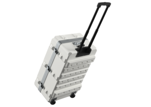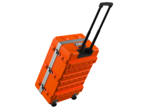 Die Trolley-Version 72 48-270 weist Innenmaße von 670 mm x 430 mm x 165 mm (L X B X H) auf. Bei einem Gewicht von 7,6 Kg ist der Behälter in neun unterschiedlichen RAL-Standardfarben verfügbar. Optional kann er mit individuellen Kennzeichnungen (Beschriftungen, Prägungen), einem abnehmbaren Deckel oder Verstärkungen durch Aluminiumbügel ausgestattet werden. Im Inneren sind bei Bedarf speziell angefertigte Schaumstoffeinlagen sowie mechanische oder elektronische Anpassungen umsetzbar. Dank des integrierten Rastersystems lässt sich der Behälter auch mit Modellen anderer Größen problemlos stapeln.