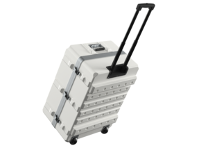 Trolley 72 56-335 eignet sich aufgrund der Beschaffenheit des Behältermaterials ideal für den Einsatz im Outdoorbereich. Die Behälterschalen aus schlagfestem Polyethylen halten in Temperaturbereichen von -40°C bis +71°C nahezu jeglichen physikalischen und chemischen Einflüssen stand. Der Trolley bietet Platz für Geräte mit maximalen Innenmaßen von 675 mm in der Länge, 560 mm in der Breite sowie 335 mm in der Höhe. Zudem lässt er sich mit zahlreichen Extras wie elekronischen Anbauten, mechanischen Einbauten und Schaumstoffzuschnitten ausstatten. Als Systembehälter verfügt der Behälter außerdem über eine Stapelbarkeit mit anderen Systembehältern unterschiedlicher Größe durch die besondere Anordnung einer Rasterung von Stapelnocken im Deckel.