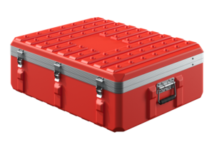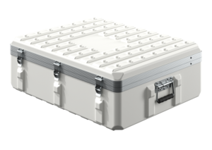 Die Behälterversion 80 64 03 S wird mit Innenabmessungen von 750 mm in der Länge, 590 mm in der Breite und 240 mm in der Höhe produziert. Das Gehäuse besteht aus schlagfestem Polyethylen, das in Temperaturbereichen von -40°C bis +71°C als nahezu unzerstörbar gilt. Optionale Schaumstoffeinsätze sowie zusätzliche Versteifungen im Behälter gewährleisten zusätzliche Sicherheit. Der Behälter kann sowohl als Koffermodell als auch mit Rollensystem und ausziehbarem Griff als Trolley gefertigt werden. Die Kompatibilität zur Stapelung mit anderen Systembehältern ist jederzeit gewährleistet.
