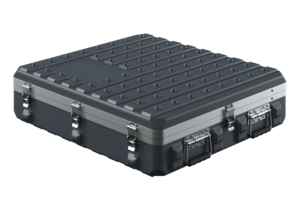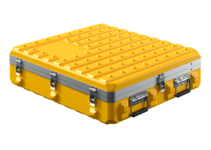 Die Behältervariante 80 72 03 S wird mit Innenabmessungen von 750 mm Länge, 670 mm Breite und 175 mm Höhe produziert. Dadurch ist sie besonders gut geeignet für den Transport von eher flachen Bauteilen oder Komponenten, die einen speziellen Schutz benötigen. Das Gehäuse besteht aus äußerst widerstandsfähigem Polyethylen, welches in Temperaturbereichen von -40°C bis +71°C nahezu allen chemischen und physischen Einflüssen widersteht. Durch optionale Schaumstoffeinsätze sowie zusätzliche Verstärkungen wird auch unter extremsten Bedingungen ein hoher Schutz gewährleistet. Der Behälter ist sowohl als Koffermodell als auch als Trolley mit Rollen und ausziehbarem Griff verfügbar. Die Kompatibilität mit anderen stapelbaren Systembehältern bleibt dabei vollständig erhalten.
