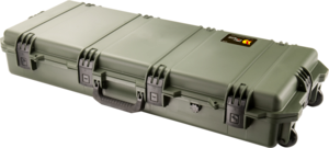 Ausstattung/Eigenschaften: Rollen, automatisches Druckausgleichsventil (gleicht den Druck im Koffer aus und lässt kein Wasser eindringen), wasserdicht, bruchsicher und staubdicht, Öse für Vorhängeschloss, beschränkte lebenslange Garantie von Peli. Optional erhältlich: gefüllt mit Würfelschaum Pick N Pluck und Noppenschaumstoff im Kofferdeckel, Deckelstützen.