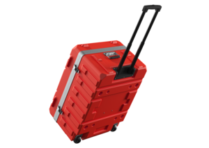 Der Trolley 2015‑410 verfügt über ein Innenmaß von 670 mm × 506 mm × 340 mm (L × B × H) und fasst rund 115 Liter. Damit bietet er ausreichend Platz für größere Messinstrumente, Werkzeuge oder empfindliche elektronische Komponenten. Sein Gehäuse aus hochschlagzähem Polyethylen (PE-HD) zeichnet sich durch besondere Widerstandsfähigkeit gegenüber Stößen, Chemikalien und extremen Wetterbedingungen aus, wodurch der Trolley ideal für den Outdoor-Einsatz geeignet ist. Für zusätzlichen Schutz kann der Koffer sowohl außen mit Versteifungen als auch innen mit Schaumstoff oder individuell angepassten Einbauten ausgestattet werden. Auch mechanische und elektronische Erweiterungen sind problemlos integrierbar, was ihn besonders flexibel für unterschiedlichste Einsatzbereiche macht.